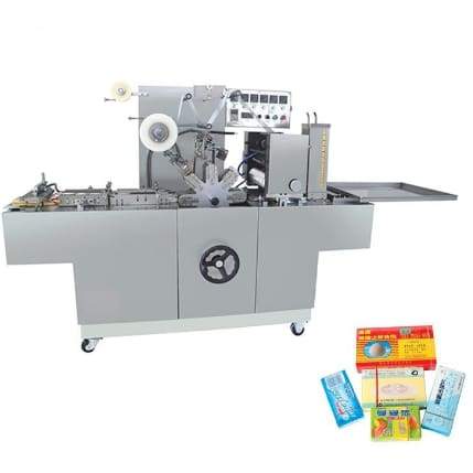The machine is widely applicable to the automatic film packaging (with gold tear tape) of various single boxed articles.