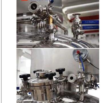 - The lid is with a light observation hole, which can keep control of the material emulsification situation in the kettle. There is a small material entrance, which is convenient to add special essence into the kettle.