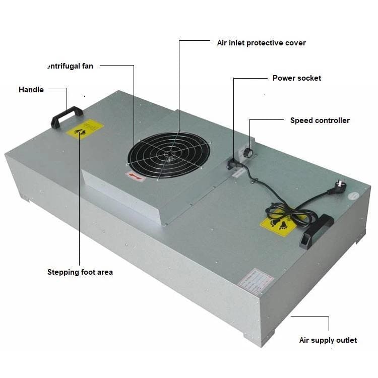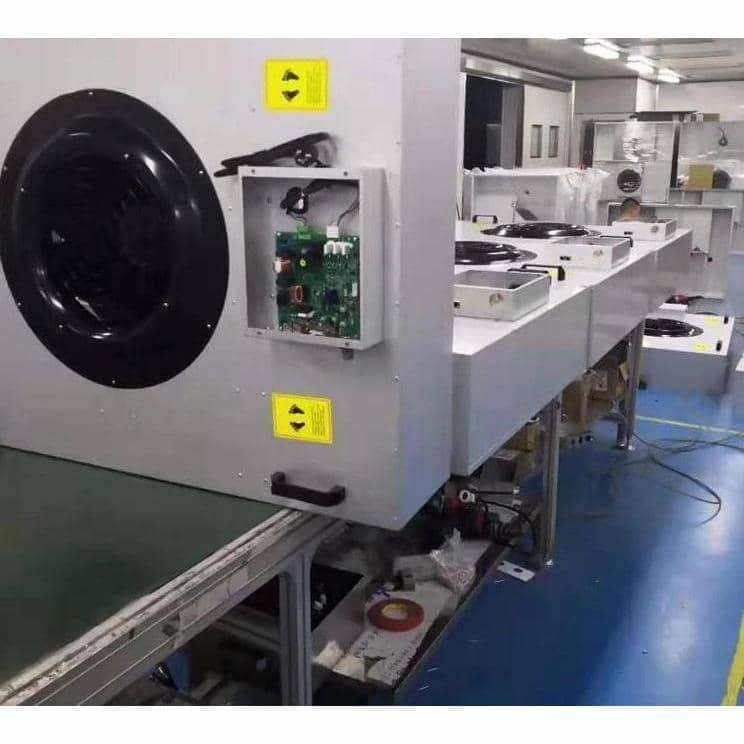 FFU can be used with modular linkage, and is widely used in the clean room with turbulent layer or laminar flow. It can be continuously run. And the air flow can reach to 0.45mm/s±20%. Long-life service, low noise, maintenance-free, small vibration, and adjustable speed. It can control thousands of units together. Before packing, it must pass the test according to the ISO14644-1 standard. The product is widely used in industries of semi-conductor, electronics, flat-panel screen, disc drive, optics and bio-engineering,etc. Customized design is available.