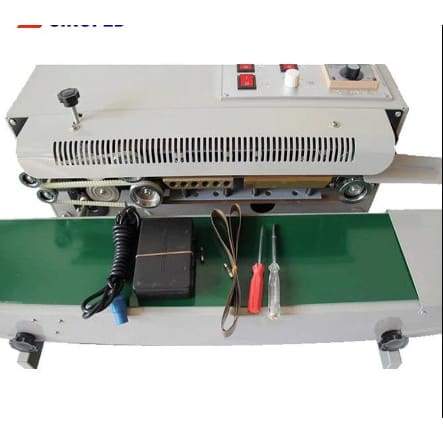 It is suitable for the sealing of plastic film, which adopts adjustable automatic thermostatic control system and step-less speed regulation driving mechanism and can realize the thermal sealing of plastic film packing automatically and continuously. Also it has functions of printing date of production, batch NOs etc.
