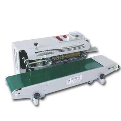 It is suitable for the sealing of plastic film, which adopts adjustable automatic thermostatic control system and step-less speed regulation driving mechanism and can realize the thermal sealing of plastic film packing automatically and continuously. Also it has functions of printing date of production, batch NOs. etc.