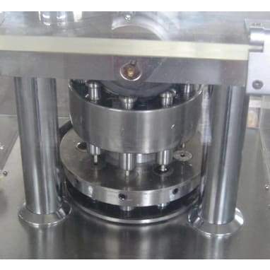 - The machine can press not only round tablets but also different geometrical shape tablets, double-layered and annular tablets, the tablets may have the impressed on both sides.