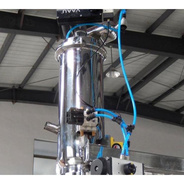ZKB-4 vacuum feeding machine is made up vacuum airpump,stainless steel material sucking port ,delivery hose,Compressed air back blowing system,Vacuum air