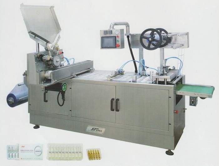This machine is an improved product innovated by our company that incorporates pneumatic-photo-electro-mechanic, controlled by PLC and man-machine interface operation. It meets packing requirement of small round bottle as ampoule for automatic printing, tray forming, feeding and cutting, it is featured by compact and convenient operation.