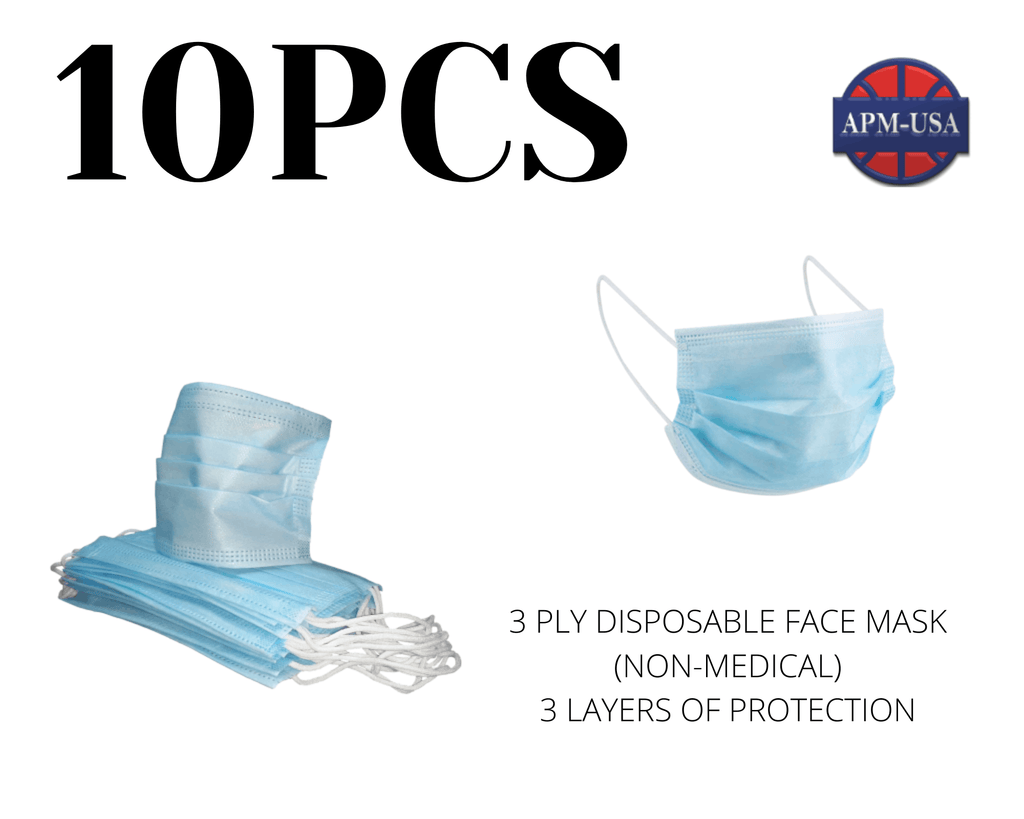 Qty 10-3 Ply Disposable Face Mask (Non-Medical)